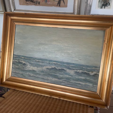 Carl Emil Baagøe, marine med skibe i uvejr, olie på lærred. 33 x 51 cm. Rammemål 48 x 67 cm. Værket er dubleret. Flere krakeleringer og reparationer/retoucheringer. Bør restaureres.
