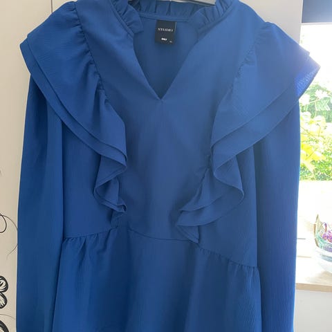 Skjorte, In wear, str. 32, Blå, Næsten som ny, Super flot blonde skjorte med læderkant i halsen. Brugt 1. Gang. Som ny.