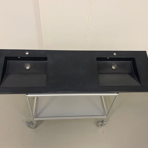 Sælger denne kvalitets og slidstærke håndvask, stenplade / bordplade med vask til brug i f.eks. badeværelse, bryggers, udekøkken mm.