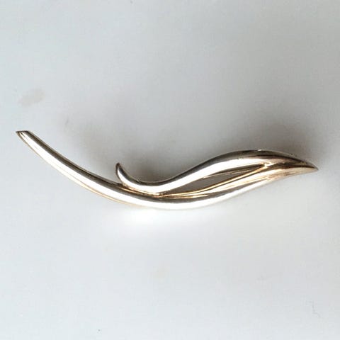 Broche, sølv, Brd Bjorklund, Vintage sølv broche med guld emalje formet som et blad.