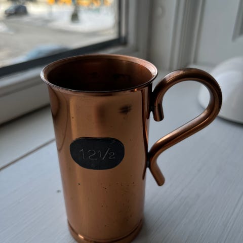 Kobberbæger, Kobber, Flot kobberbæger. Højde 10 cm. Diameter i bunden 5 cm. Diameter i top 8,5 cm.