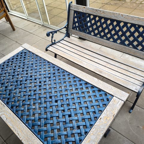Havebænk med svævehylder masiv eg