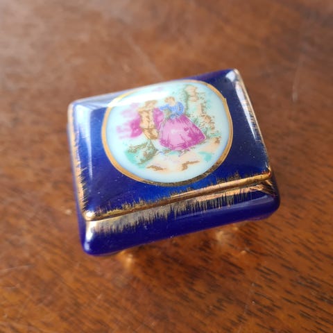 Smukt håndmalet porcelænsskrin, måske til opbevaring af små fine smykker : )