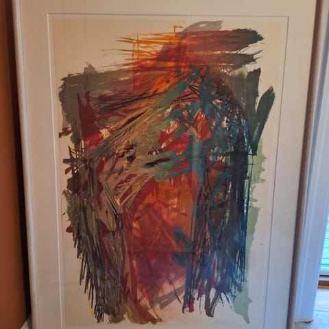 Litografi, Peter Brandes, motiv: "Det røde lys"