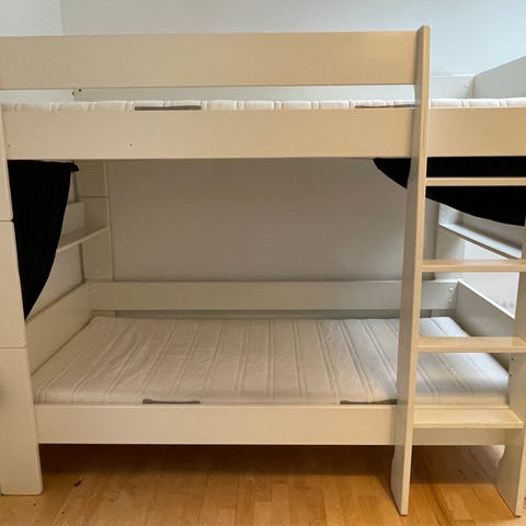Denne køjeseng er meget fleksibel, da man kan hæve og sænke ligge højden efter behov.