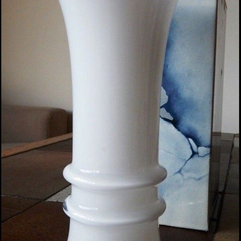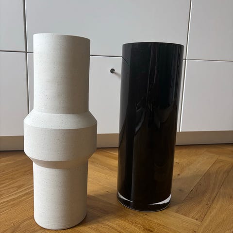 Vase, Ukendt, Stor vase i hvid med sort kant. 40 cm i højde. perfekt til langstilkede røde roser ??.