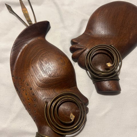 Teaktræ kvindehoved, 1960, Retro fra 60`erne, kvindehoved i teaktræ og messing til ophængning , fin stand. Forsendelse kan aftales.