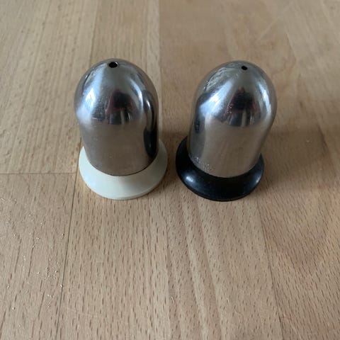 Salt- og peber-sæt i metal og glas