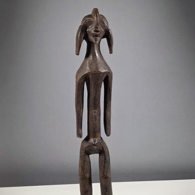 Oprindelig fra Mali spejler denne træstol Bozo-folkets håndværk, traditionelt bosat ved Niger-floden. Kendt for sit tætte bånd til vandet og fiskeriet udvikler Bozo-folket et praktisk håndværk præget af enkelhed i form og funkcjonalitet. Uskåret i et enkelt stykke træ, præsenterer denne stol en robust og afbalanceret struktur, ofte kendetegnet ved rene linjer og en funktionel siddeplads. Ud over sin daglige brug legemliggør den en æstetisk tilgang, hvor formål-bevarelsen afspejler en dyb forståelse for materialer og skulpturteknikker.