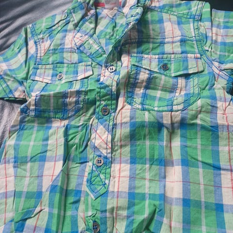 Skjorte, Langærmet skjorte, Abercombie & Fitch, str. 140, Str. S, muscle, dueblå tern, fed til jeans.