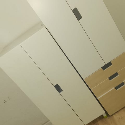 Garderobeskabe med skuffe + skuffe med hjul;