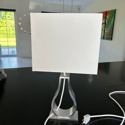 Bordlampe i sølvfarve.