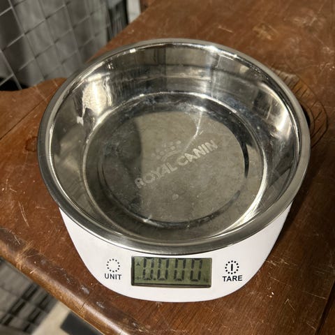 Andet, vægt til hundemad, Digital vægt til hunde- og kattemad - til katte og små hunde - eller hvis dyrene er på diæt. Vi har brugt den, mens vores hvalp voksede, da madmængden skal sættes op hver måned. Nypris 100,- / sender gerne