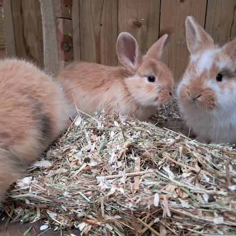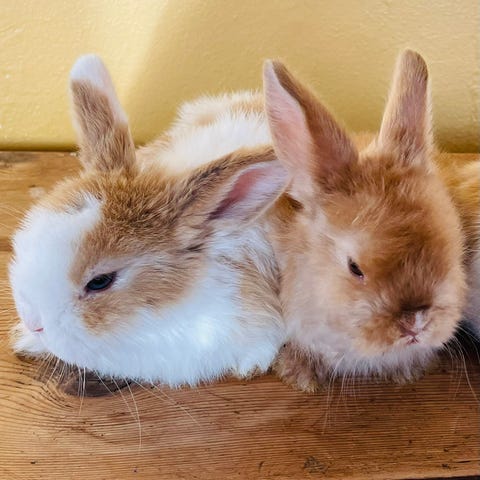 Begge kaniner er håndtamme og vant til mennesker, men de er ikke bærekaniner. Til gengæld elsker de at blive nusset, komme hen for at sige hej og selvfølgelig få lækker mad 🥦