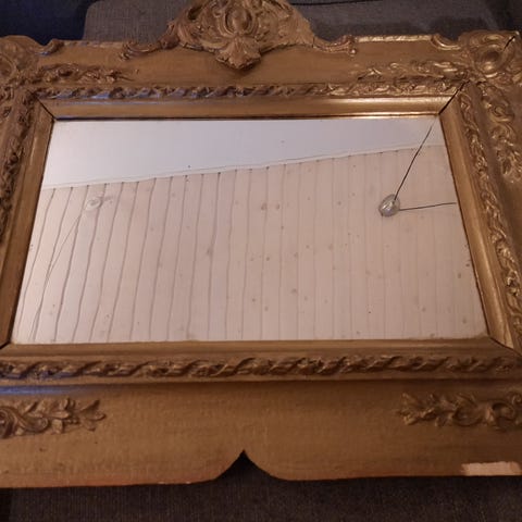 Rektangulært spejl med gylden ramme. Spejlet har en enkel, glat træramme i gylden farve med let profilerede kanter. Det kan anvendes i entré, stue, soveværelse eller badeværelse, hvor der er behov for et væghængt spejl med klassisk udtryk.