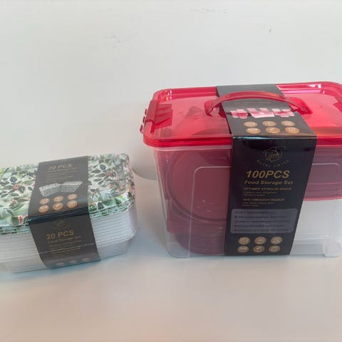 Plastopbevaringsbokse, 1 ks med i alt 104 dele. Godkendt til mikroovn, opvaskemaskine og frost. 2 stk. 1900Ml, 2 stk. 1000Ml, 4 stk. 700ML, 14 stk. 280ML, 2 stk. 1450ML, 4 stk. 750ML, 16 stk. 120ML, 2 stk. 950ML, 4 stk. 750ML, 2 stk. 350ML. Ubrugt