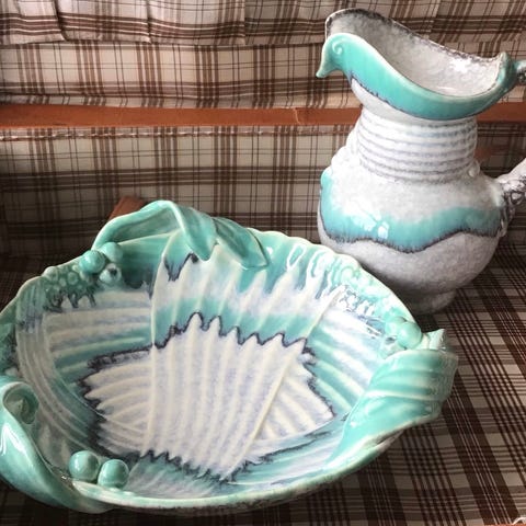 Kande fra Kastrup i Art Deco stil kande i uranglas, sandsynligvis fra 1930'erne. Glaskande i gennemsigtigt grønt glas med ravfarvet hank. Kanden har slebet blomstermønster på siderne og en rund fod. Udstyret med hældetud for nem ophældning. Velegnet til servering af vand, saft eller andre drikke ved borddækning. Den står i rigtig god stand med få brugsspor.