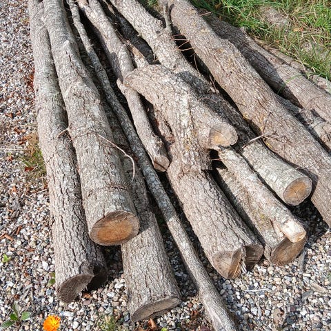 Rigtig fine egetræs stammer som har stået i en remisse ved jernbanen, så det er rigtig fine stammer, sælges til 1000,- pr styk, der er ca. 5 m3 svarende til 7,6 skov rummeter.