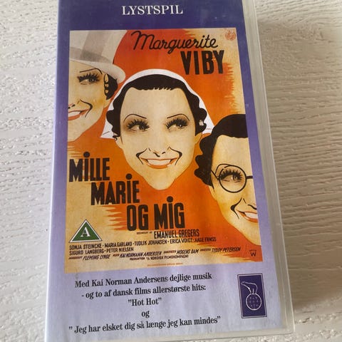 Mille Marie og mig VHS videobånd. Dansk lystspil med Marguerite Viby. Kassetten er i plastboks med trykt omslag på dansk. Velegnet til afspilning på VHS‑videomaskine og til samlere af klassiske danske film på videobånd.
