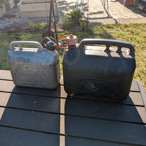 7 dele benzin og sprit dunke.
