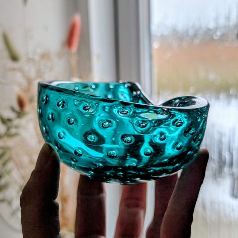 Flot organisk form, med de karakteristiske små luftbobler i glasset.