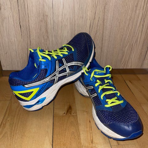 Asics løbesko i str. 42. Skoene er i grå med gule og orange detaljer samt snørelukning. Overdelen er i mesh og syntetisk materiale, og sålen er en gummisål egnet til løb. Velegnet til løbetræning og anden sport, hvor der er behov for løbesko i denne størrelse.