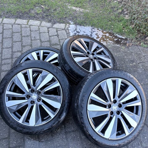 4 stk. Originale Peugeot 508 Alufælge 19" 4x108 ET 44 med 235 40 19 sommerdæk 85% mønster. De er afbalanceret. hjulbolte og hætter medfølger.