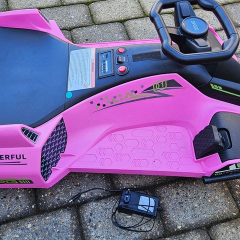 Hoverboard gokart sæde i sort plast og metal. Monteres på et hoverboard for at omdanne det til en gokart-lignende vogn, hvor føreren sidder ned og styrer med håndtagene i siderne. Justerbar ramme med fodstøtte og lille forhjul for stabilitet. Velegnet til brug på jævne underlag som fliser eller asfalt, afhængigt af hoverboardets specifikationer.