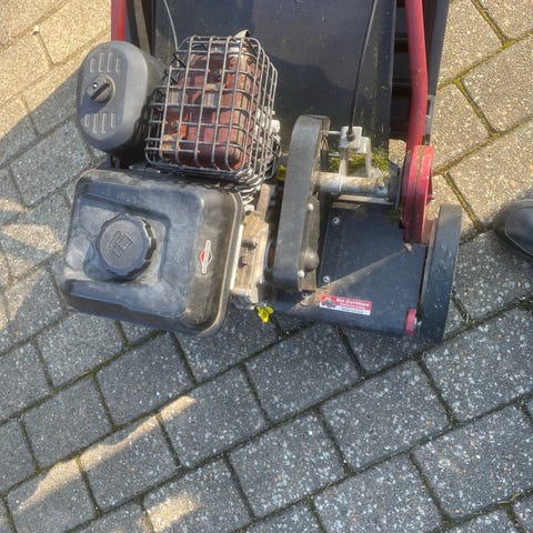 Gudenaa L45 cylinderplæneklipper med benzindrevet motor. Plæneklipperen har cylinderknive under skjoldet og leveres med opsamler foran. Egnet til klipning af græsplæner, hvor der ønskes jævn og præcis klipning. Maskinen har håndskubbet konstruktion med styrebøjle og hjul til nem manøvrering på plane arealer. Tromlen ved siden af er til vand og koster 50kr. Skal afhentes.