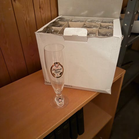 Maribo Øl ølglas med trykt grøn Maribo-logo på siden. Glassene er mærket med 0,4 l målestreger. Leveres sammen med to runde Maribo-ølbrikker i pap med grøn og sort tryk.