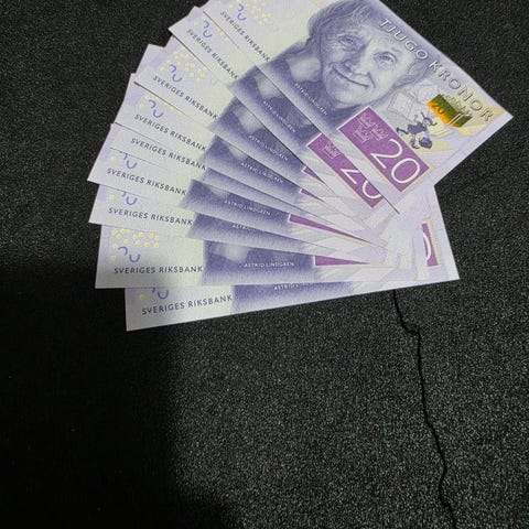 A completely new Swedish 20 SEK banknote in uncirculated condition, in bundle.