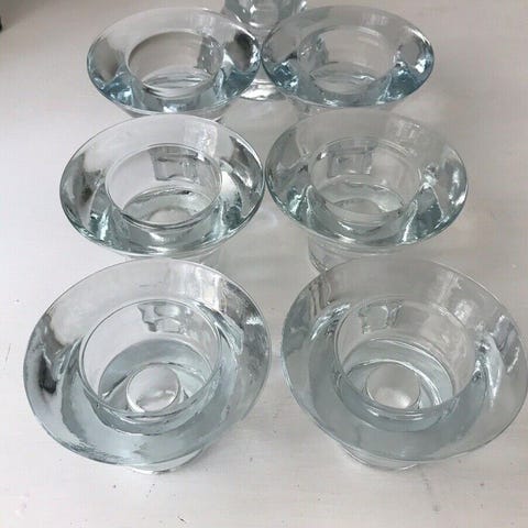 Lysestager i glas, 7 små fyrfadsstager til fyrfadslys i glas