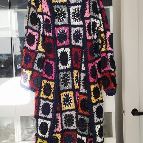 Super smuk lang cardigan eller frakke i hør, kan bruges både med kjoler og bukser.