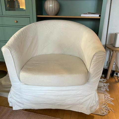IKEA lænestole i hvidt betræk, som kan tages af og vaskes.