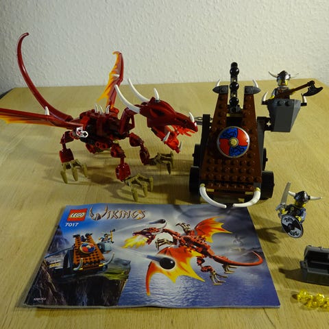 Lego 7021 - Vikings, Viking Double Catapult vs. the armored Ofnir dragon