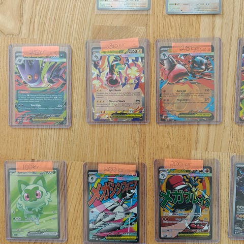 35 Pokémon EX holo kort sælges – mange nyere fra 2024/2025. Sælges samlet eller i mindre bundles. Alle er ægte og i god stand.