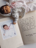 Dukker, Baby dukke fra Sybille Sauer, kendt tysk dukkemager. Dukken er 18 cm høj.