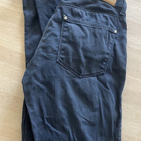Bukser, Acne Studios, str. 50, Mørke blå, Næsten som ny, Mørke blå bukser fra Acne Studios.de er str L og har vært brugt 5 gange .