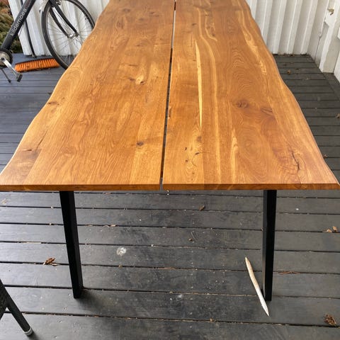 Bordet er blevet slebet og olieret, så det er klar til salg.