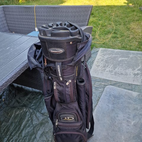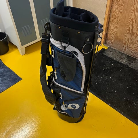 Andet golfudstyr, Golfbærebag MAXFLI vandskyende nylon højde 90cm diameter foroven 20cm med bærehåndtag og skulderrem og 4 lynlåslommer der fungerer perfekt absolut fast pris kan ikke forhandles kr500. Lforan