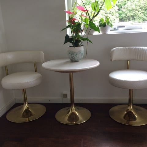 Smukt Cafesæt, 2 klapstole og bord, mosaik og jern.