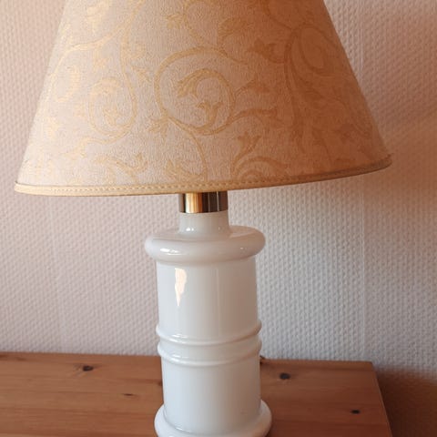 Bordlampe fra Holmegaard. Holmegaard Apoteker – Royal Copenhagen i hvid glas. Højde 22 cm inkl. fatning. Kan afhentes i Slagelse, Næstved eller Hillerød.