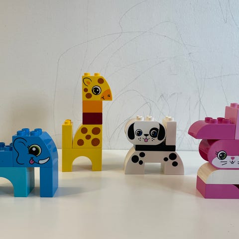 Kat, papegøje, hund, elefant og panda. De kan skilles i mange dele og bygges om igen, evt. til fjollede dyr.
