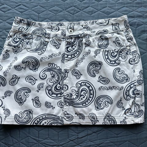 Virkelig sød mininederdel fra Concept med et fedt abstrakt mønster i grå, sort og mintgrøn. Flot pasform med læg ved taljen, der giver en god form. Standen er som ny.