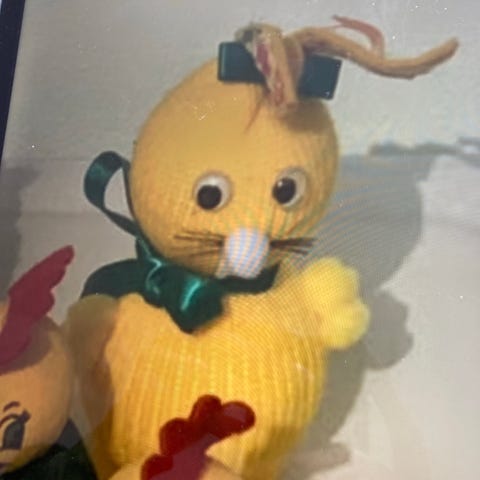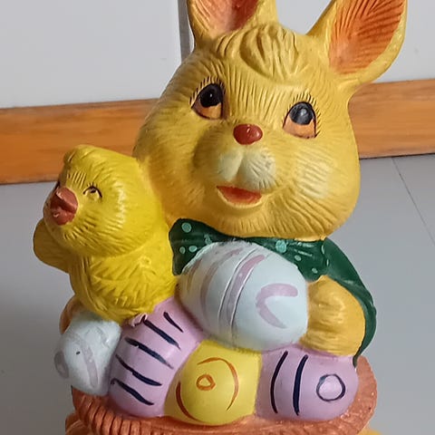 Cute porcelain Easter bunny with eggs in a basket, a lidded bowl.