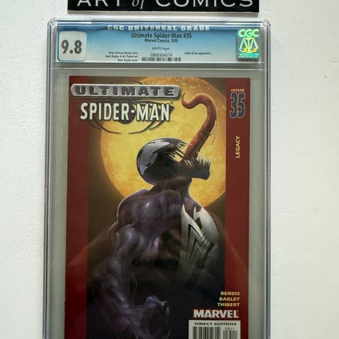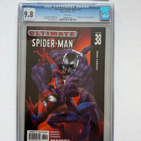 The Amazing Spider-Man, første udgave vurderet Mint CGC 9.6, nummer 298, med første optræden af Eddie Brock (Venom) i tegninger af David Michelinie, Todd McFarlane og Bob McLeod, udgivet af Marvel Comics i 1988. Klik på den blå "gå til varen" knap, for at købe eller byde på denne vare. Den samlede pris vil blive vist inden du afgiver dit bud.