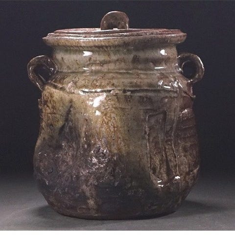 Stykke er bemærkelsesværdigt for sin generøse skala og enestående vægt — den tykke vægkonstruktion (ca. 1,2 cm) giver den en dominerende, solid tilstedeværelse, der vidner om de robuste håndværkstraditioner inden for Mino-keramik.
