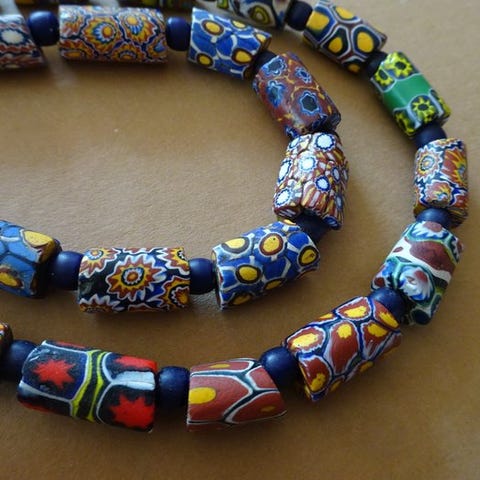 Snoer, opbygget af to strenge med 48 sjældne smukke Millefiori-perler fra Mur...