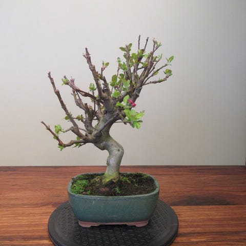 Deciduøs Malus halliana bonsai fra Japan, cirka 15 år gammel, i en nyutscheret tsjekkisk bonsaiskål, træets højde 35 cm, stammediameter 1,5 cm, dybde 20 cm, potten 17x17x6 cm, samlet vægt 4 kg. Klik på den blå "gå til varen" knap, for at købe eller byde på denne vare. Den samlede pris vil blive vist inden du afgiver dit bud.