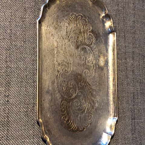 kagebakke, kagebakke i sølvfarve med hank og håndlavet flacon, måler 23x23 cm